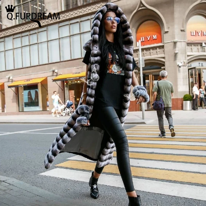 В. FURDREAM, новинка 2020, Длинная женская модная Роскошная зимняя теплая цельная кожаная верхняя одежда с шиншиллой, на заказ
