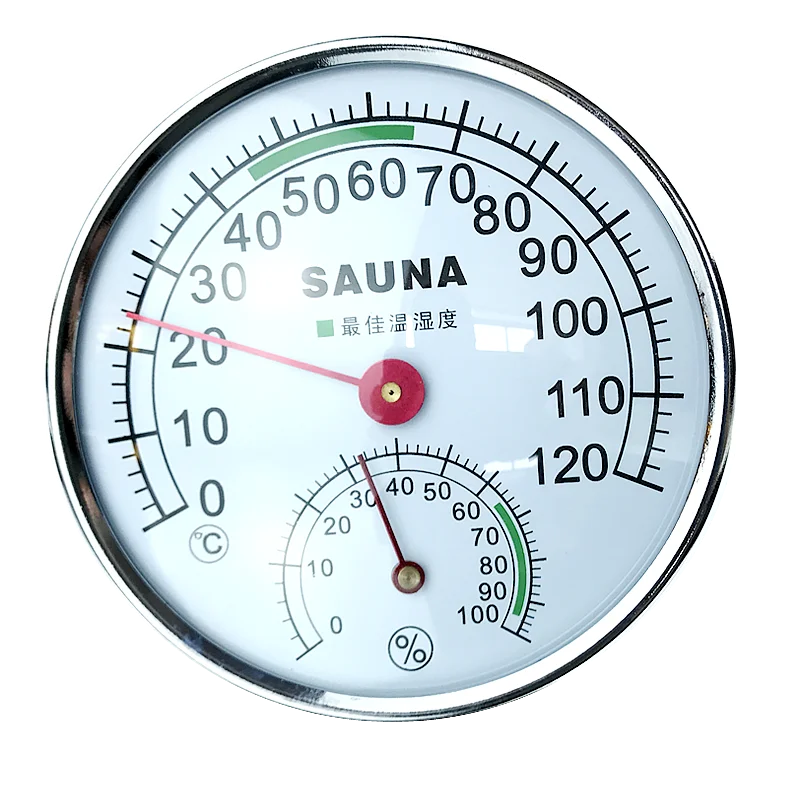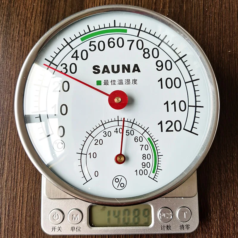 Металлический материал, высокая чувствительность, своевременное преобразование температуры, и продукт может отображать большой диапазон температур. Продукт представляет собой термометр двойного назначения, который может отображать влажность и температуру. Температура в сауне четко отмечена в эксклюзивной среде, такой как сауна. Это универсальный термометр, специально разработанный для сауны.