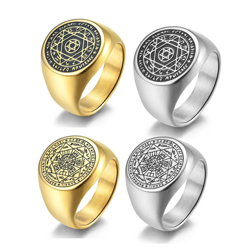 Мужские кольца из нержавеющей стали с Соломоновым уплотнением, с гексаграммой Seven Signet, мужские ювелирные изделия