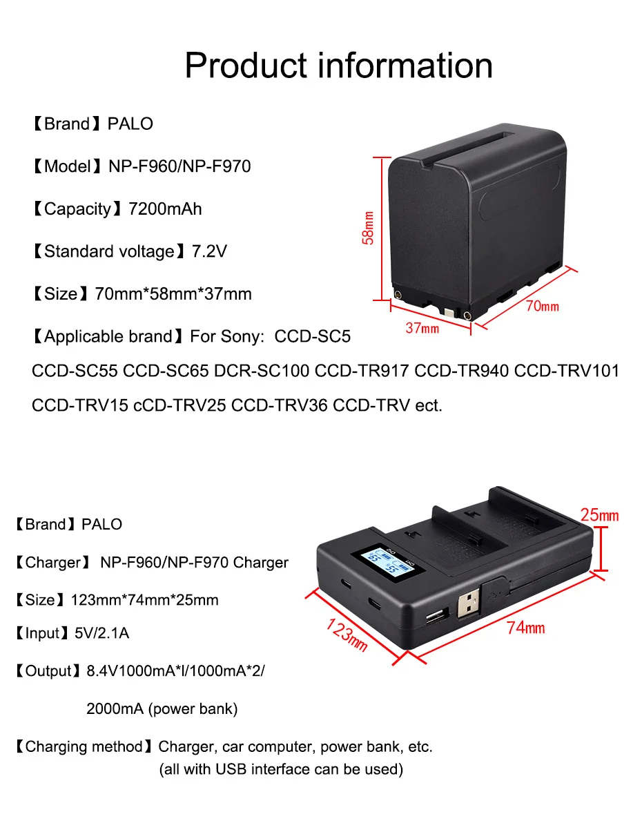 Sony NP-F770, NP-F550, NP-F530, NP-F750, NP-F730, NP-F950, NP-F960, NP-F975, NP-F970