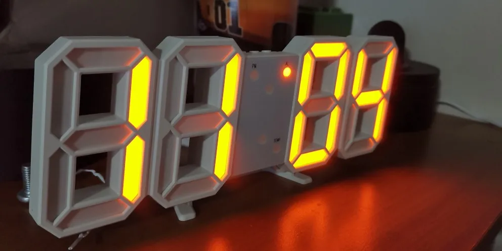Отличная связь с магазином, хорошо запечатанный продукт, хорошее освещение при включении и подчеркнуть важную информацию, как в дополнение к времени, сообщает дату и температуру комнаты в дополнение к возможности настроить будильник, он не поставляется с батареей, но USB-кабель питания ценится