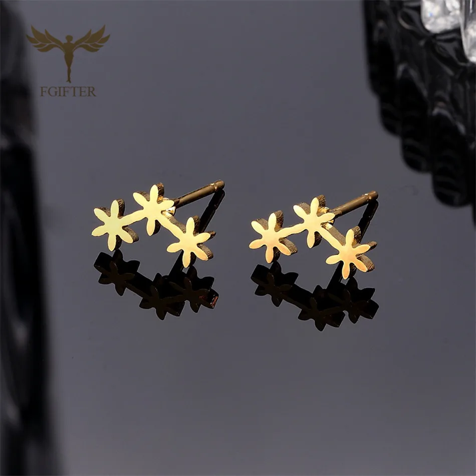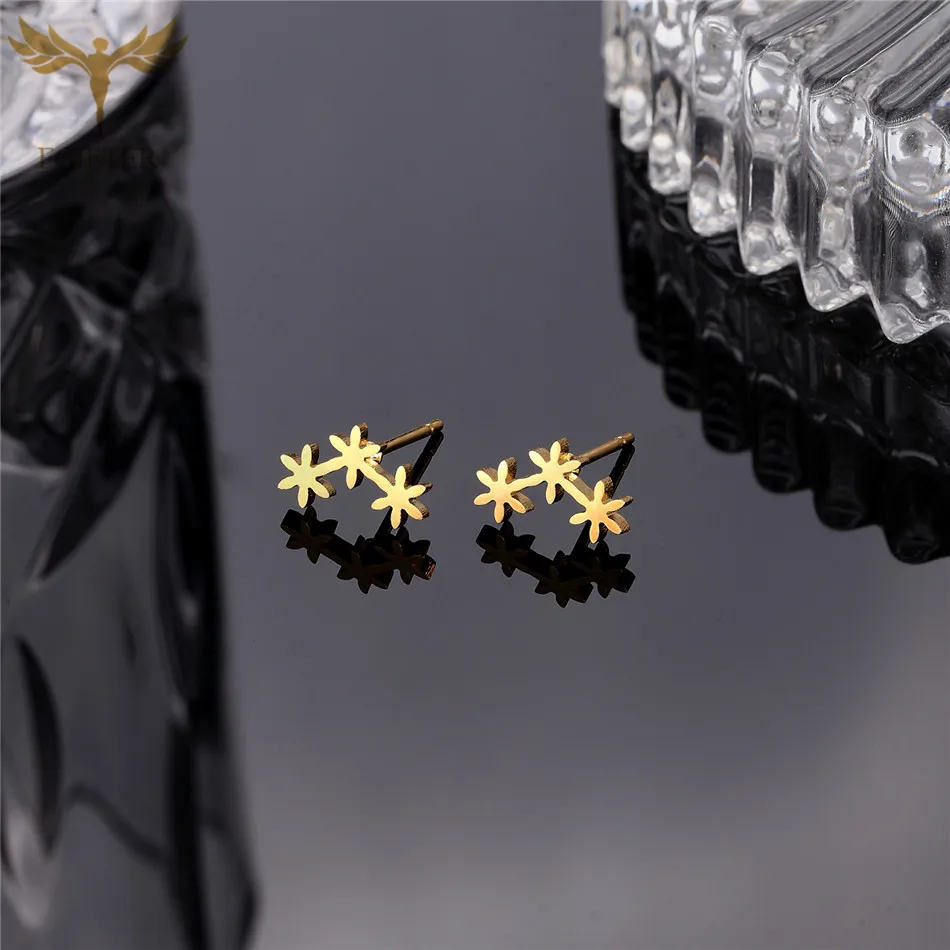 Название: серьги в виде снежного цветкаМатериал: нержавеющая стальВысокое качество на 100% абсолютно новыйЦвет: золотые серьги-гвоздикиПреимущество: не вызывает аллергии, не выцветает