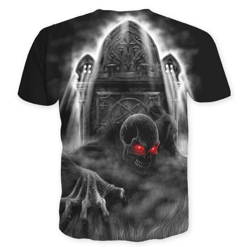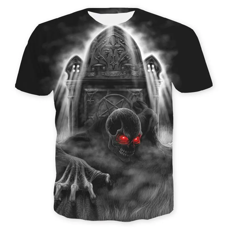 Футболка с цифровым 3D-принтом черепа, костюм кладбища, скелета, Хэллоуин, для женщин и мужчин, летняя аниме одежда для косплея, черные Топы И Футболки