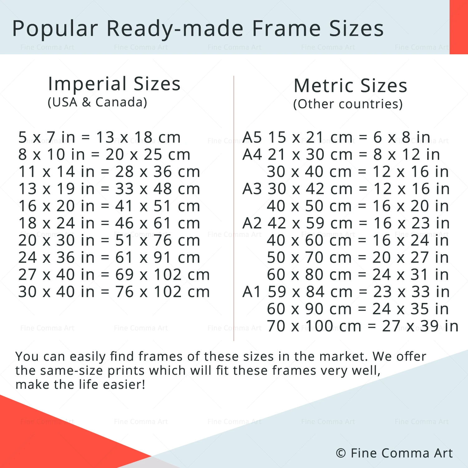 Нам нужно изменить размер и обрезать изображение для печати разных размеров. Мы гарантируем наилучший результат. Если ваш запрашиваемый размер не указан, пожалуйста, свяжитесь с нами для заказа на заказ.