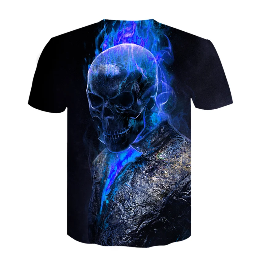 Мужская футболка с черепом, модная летняя футболка с коротким рукавом и принтом в виде призрака, крутая футболка с 3D изображением синего пламени и черепа, топы, футболка с принтом в виде черепа