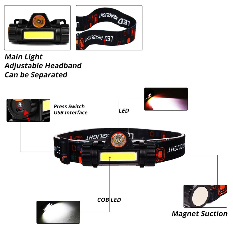 ★Зачем держать фонарик так сильно, пока вам нужны обе руки для работы? --- Насколько проще при выполнении задач ночью быть свободными руками? Такие как ночная работа, кемпинг, ночной бег, рыбалка, езда на велосипеде и ночное чтение и т. д. Кроме того, он установлен магнитный, который удобно использовать в конкретных условиях, таких как ремонт автомобиля.★Два светильник источников ---1 шт. COB свет потока и 1 шт. T6 прожектор, COB освещение потока с более чем 100 градусов широкий луч может обеспечить гораздо более широкое видение и прожектор обеспечивают более длинное расстояние луча бросания. Весь светильник можно регулировать вверх и вниз на 90 градусов для предотвращения мертвых зон освещения.★USB перезаряжаемые ---Установлен 1 шт. аккумулятор 18650 и легко заряжается через предоставленный usb-кабель, это занимает около 4-6 часов полной зарядки, И вы получите около 15-20 часов использования (в зависимости от режима, который вы используете). Перезаряжаемый налобный фонарь позволяет избежать проблем с заменой батареи, экологически чистый и прочный.★Удобные и легкие ---Удобная повязка на голову изготовлена из качественного эластичного нейлона. Легкий налобный фонарь уменьшает усталость при длительном ношении.
