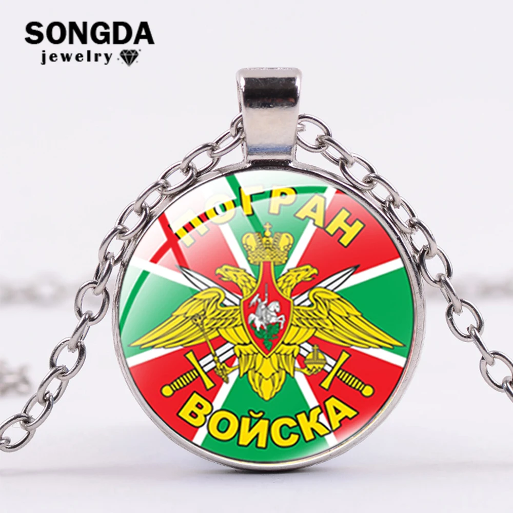 Ожерелье SONGDA с русской границей армейская подвеска СССР, символ войск СССР, стеклянный кабошон, сувенир ручной работы ожерелье