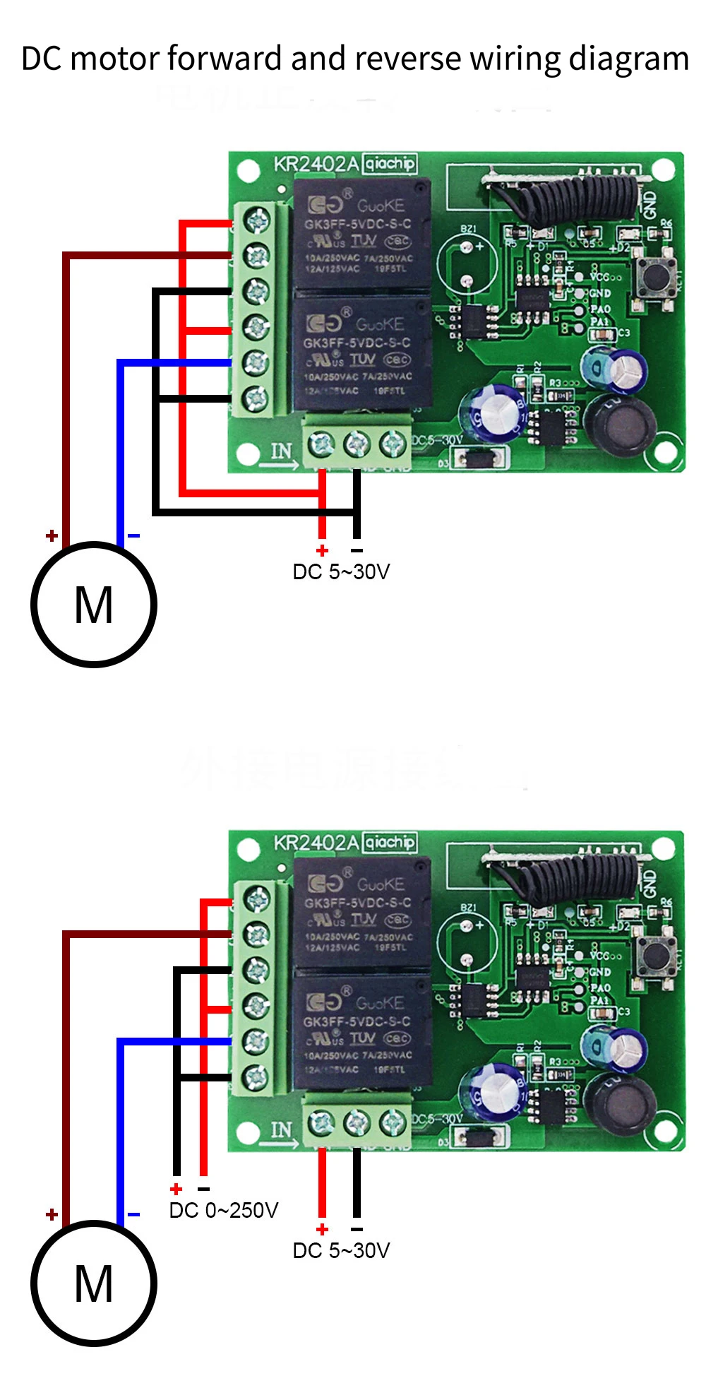 Номер модели: KR2402A-4 Входное напряжение: 6В-30В Рабочий ток: 10A Максимальная мощность нагрузки: 300 Вт x2 Частота: 433 МГц Поддержка формата кодирования: EV1527 Метод проводки: NC COM NO Режим работы: Мгновенный, переключаемый, задержка времени блокировки
