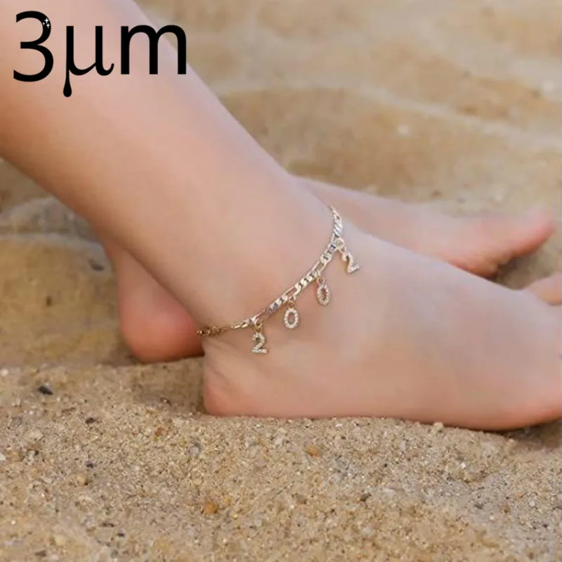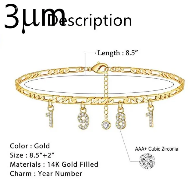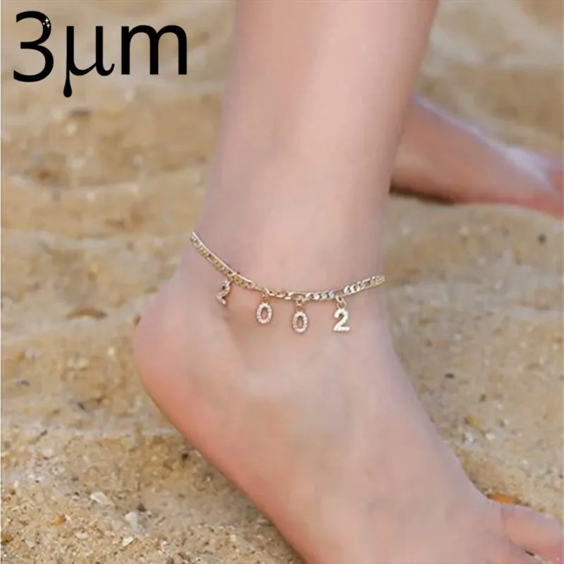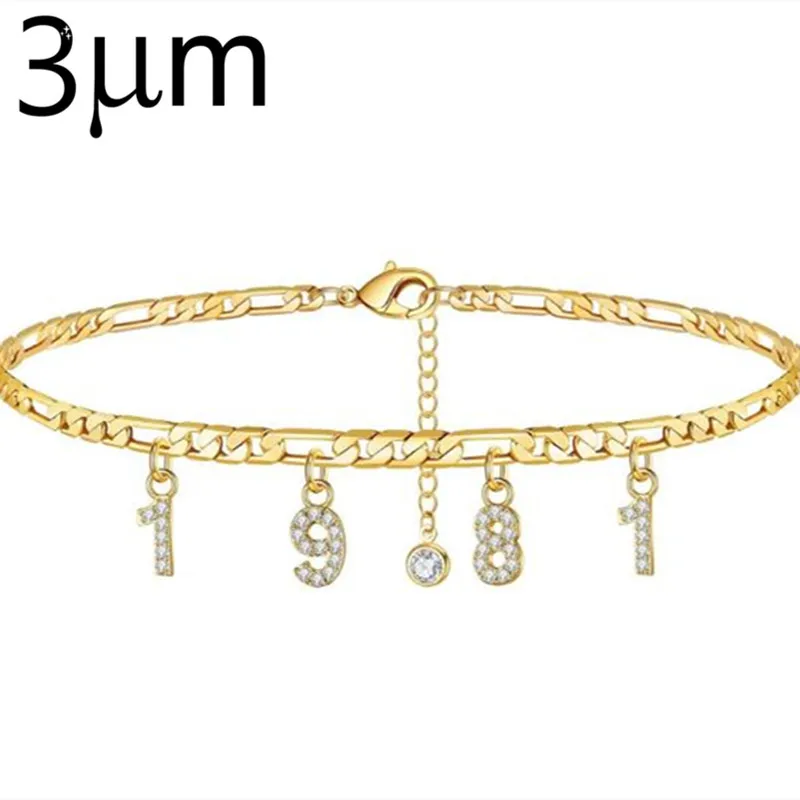 Ножной браслет для женщин, 3 года рождения, с цифрами на лодыжку, с фианитом