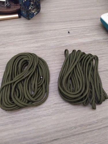 Я все еще должен сделать тесты, выше выносливости. Это не похоже на настоящую струну Паракорда, хотя, если они приходят 5 м, это хорошо для чего-то в жизни, например, для монтажа вивака или тендера