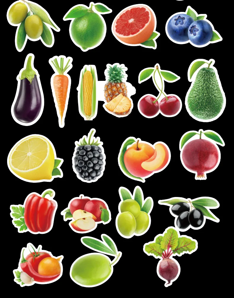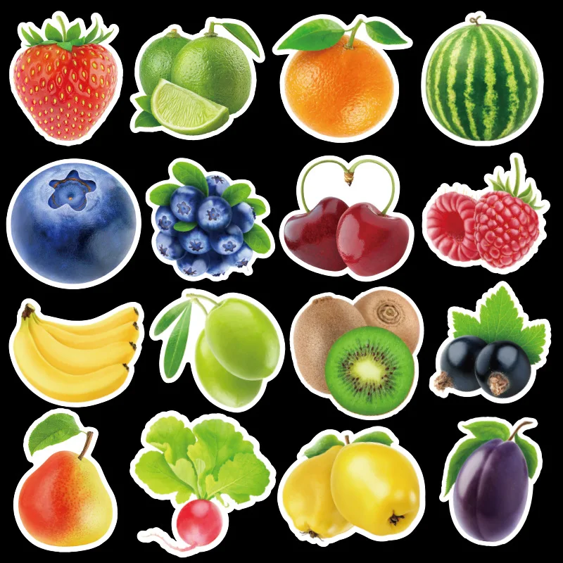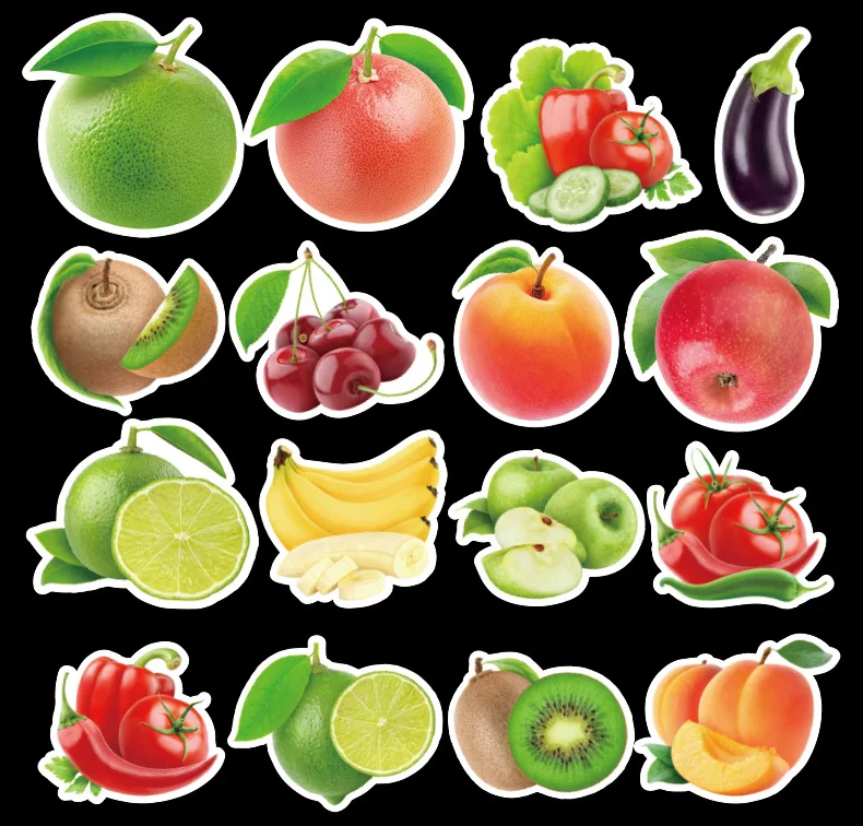 100 шт., изысканные мультяшные свежие фрукты, овощи-наклейки для ку...