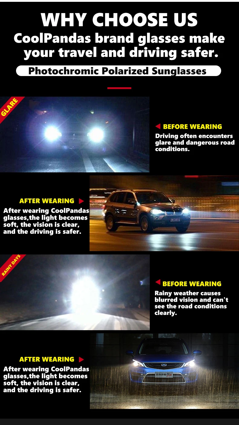 Они очень легкие в дополнение к элегантному и ночью они выглядят очень хорошо. Я, кто близорук, замечал, как хорошо я вижу в темноте. Полностью Рекомендуемые эти очки как для мужчин, так и для женщин