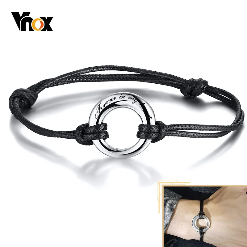 Vnox Бесплатная пользовательская урна браслеты с прахом для мужчин и женщин Регулируемая Веревка Круг жизни вечность памятные подарки кремационные ювелирные изделия
