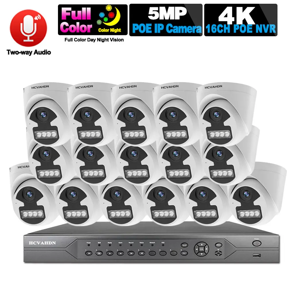 Двухсторонний аудио распознавание лица H.265 16CH 5MP POE NVR комплект CCTV система безопасности аудио AI POE IP камера наружный комплект видеонаблюдения