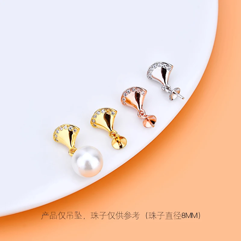 V-образный лист гинкго полый держатель для бусин Кулон Голова S925 чистого серебра DIY Аксессуары Материал драгоценный камень Бусины Кулон пуговица