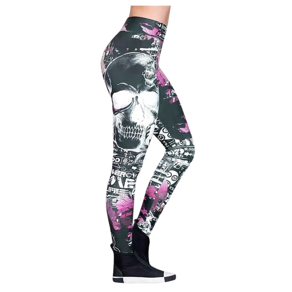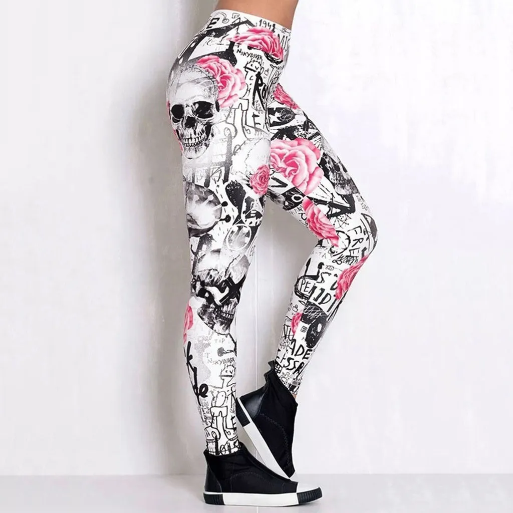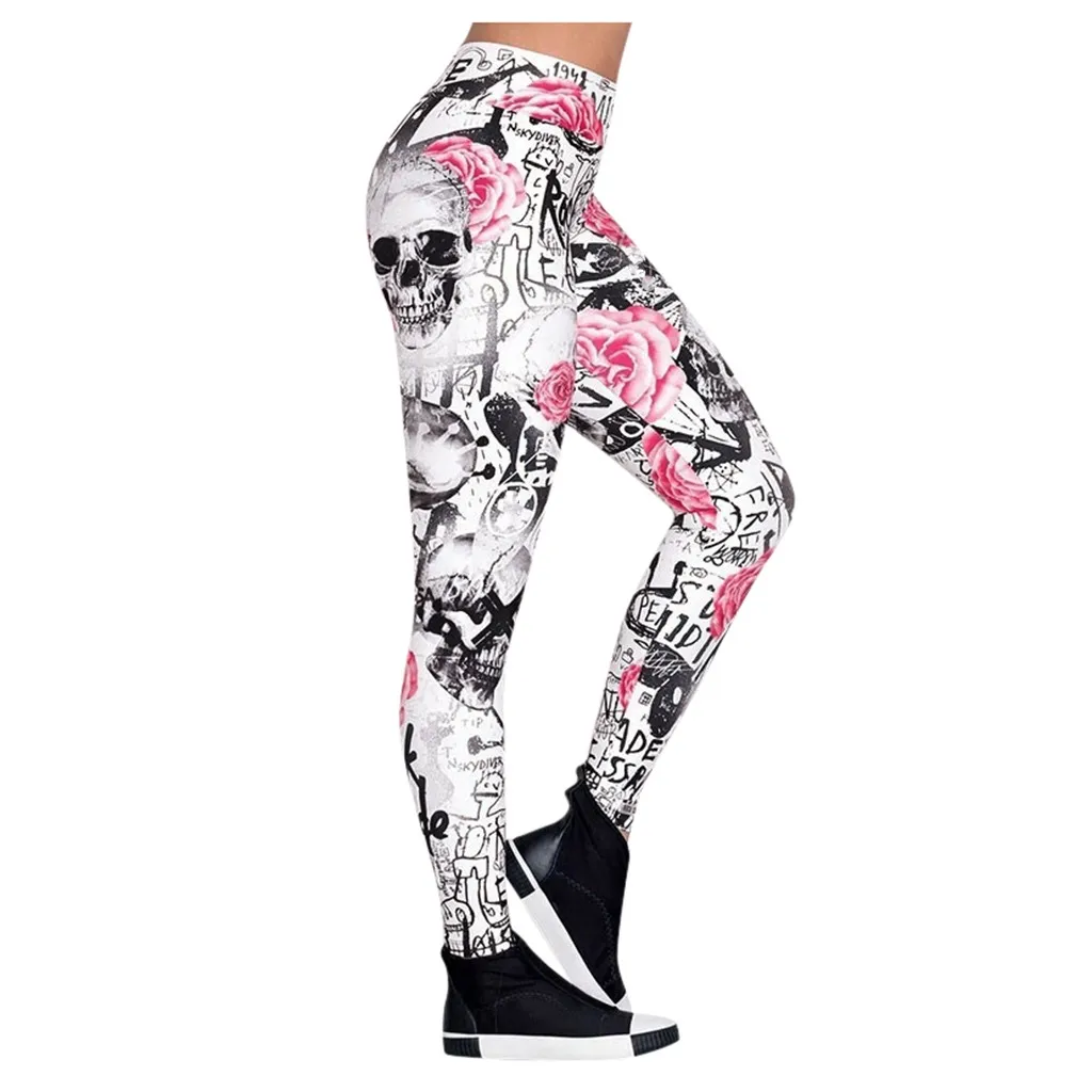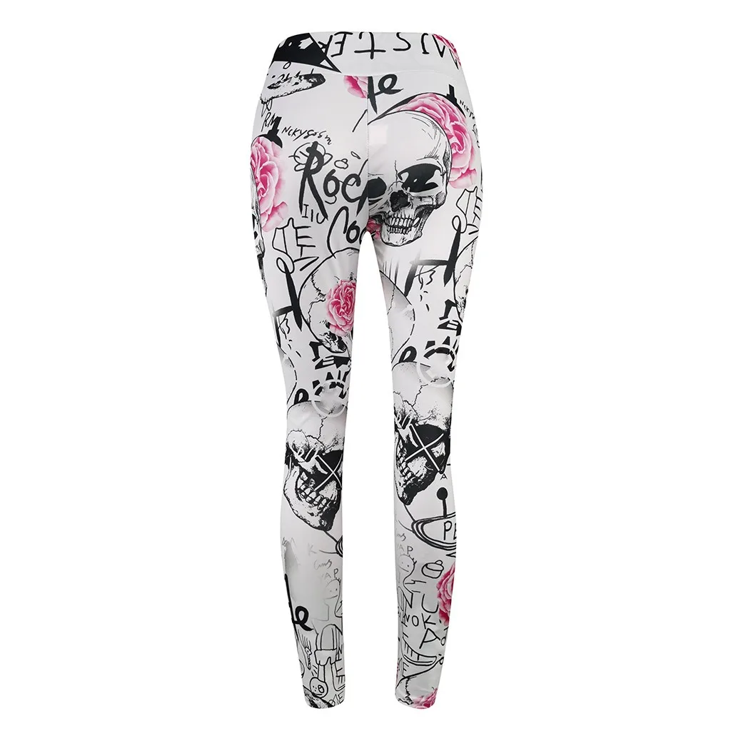 Женские Модные узкие брюки с принтом черепа Леггинсы для йоги с высокой талией