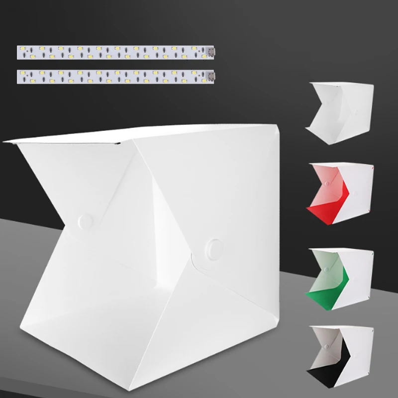 Спецификация: Стиль: портативный комплект для фотосъемки с тентом. Материал: акрил + АБС-пластик. Цвет: белый. Размер изделия: 22*24*24 см. Структура: легко собрать. Супер яркий светодиодный бисер, обеспечивает средний Светильник для вашего продукта. Складная конструкция, легко хранить и переносить в комплекте с 2/6 фоновыми изображениями, чтобы удовлетворить ваши потребности, идеально подходит для съемки небольших продуктов. Используйте кабель micro USB или зарядное устройство для телефона в качестве источника питания.
