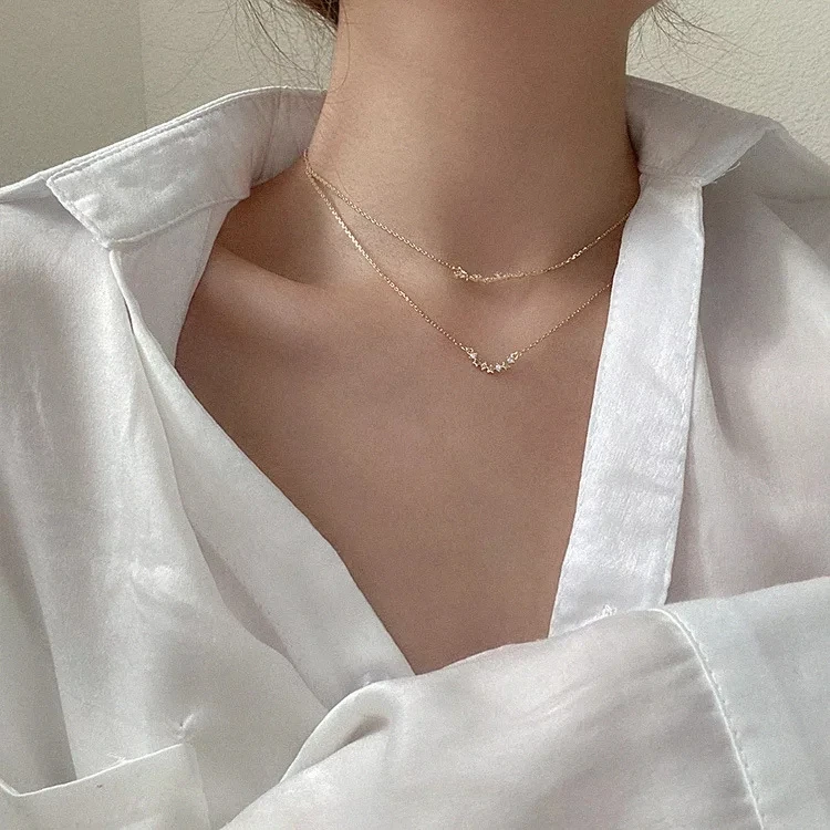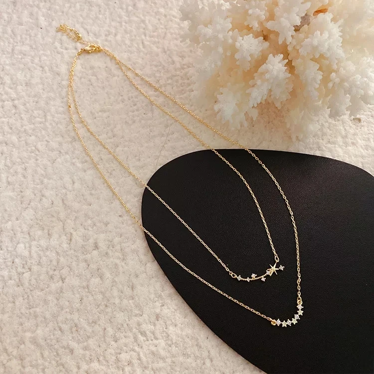 Цепочка-чокер Женская позолоченная, 14 карат, с кулоном в виде звезды, двухслойная, 2020, подарочные украшения для выпускного вечера, лунные ожерелья