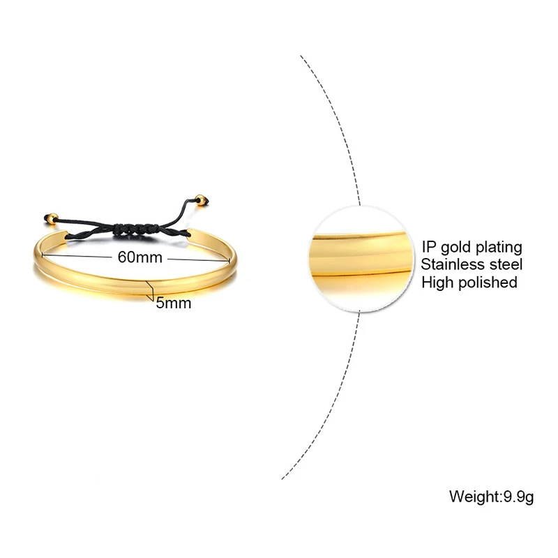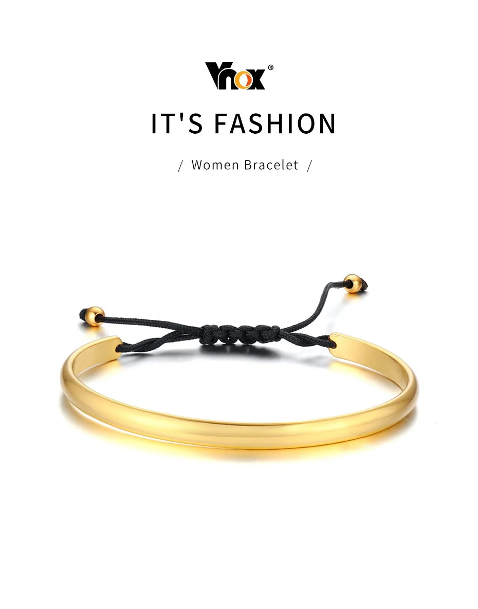 Браслет женский Vnox, минималистский, с гравировкой, тонкий, регули...