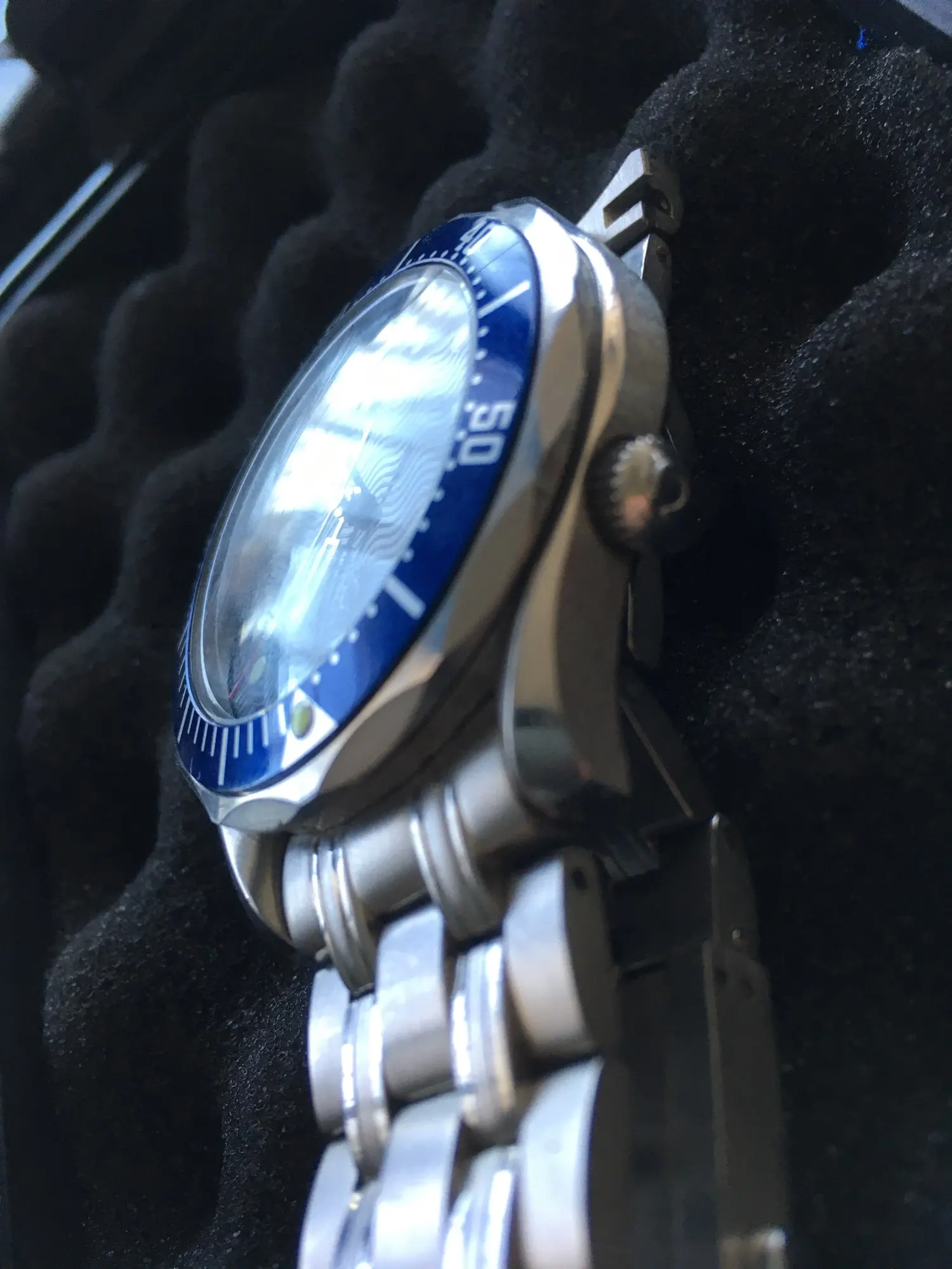 Rolamy оптовая продажа высококачественные алюминиевые темно-синие с белыми вставками для часов Omega Seamaster 2220