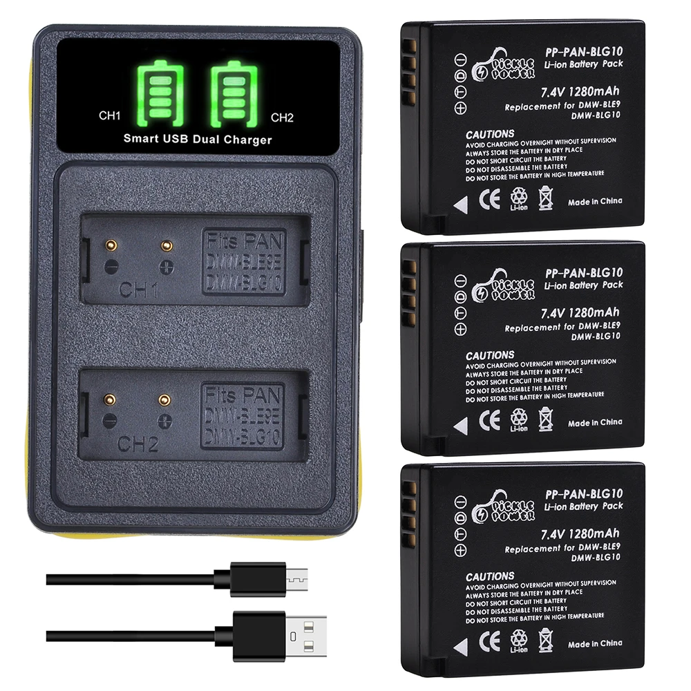 1280 мАч DMW-BLG10 батарея + двойное зарядное устройство для Panasonic Lumix GF3 GF5 GF6 GX7 LX100 GX80 GX85 ZS60 ZS100