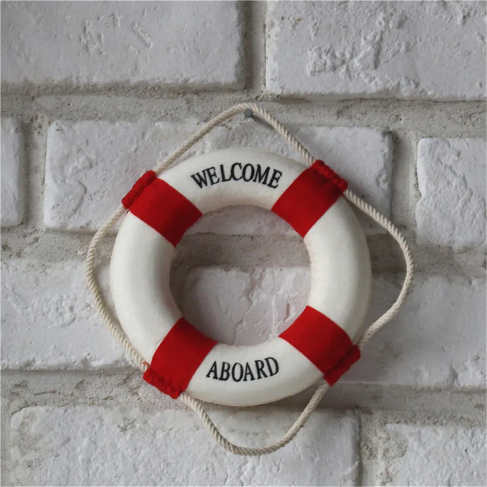 Цвет: красный, синий Средиземноморский стиль Добро пожаловать на борт спасательный круг кольцо Лодка на стену Украшение Размер: 14 см