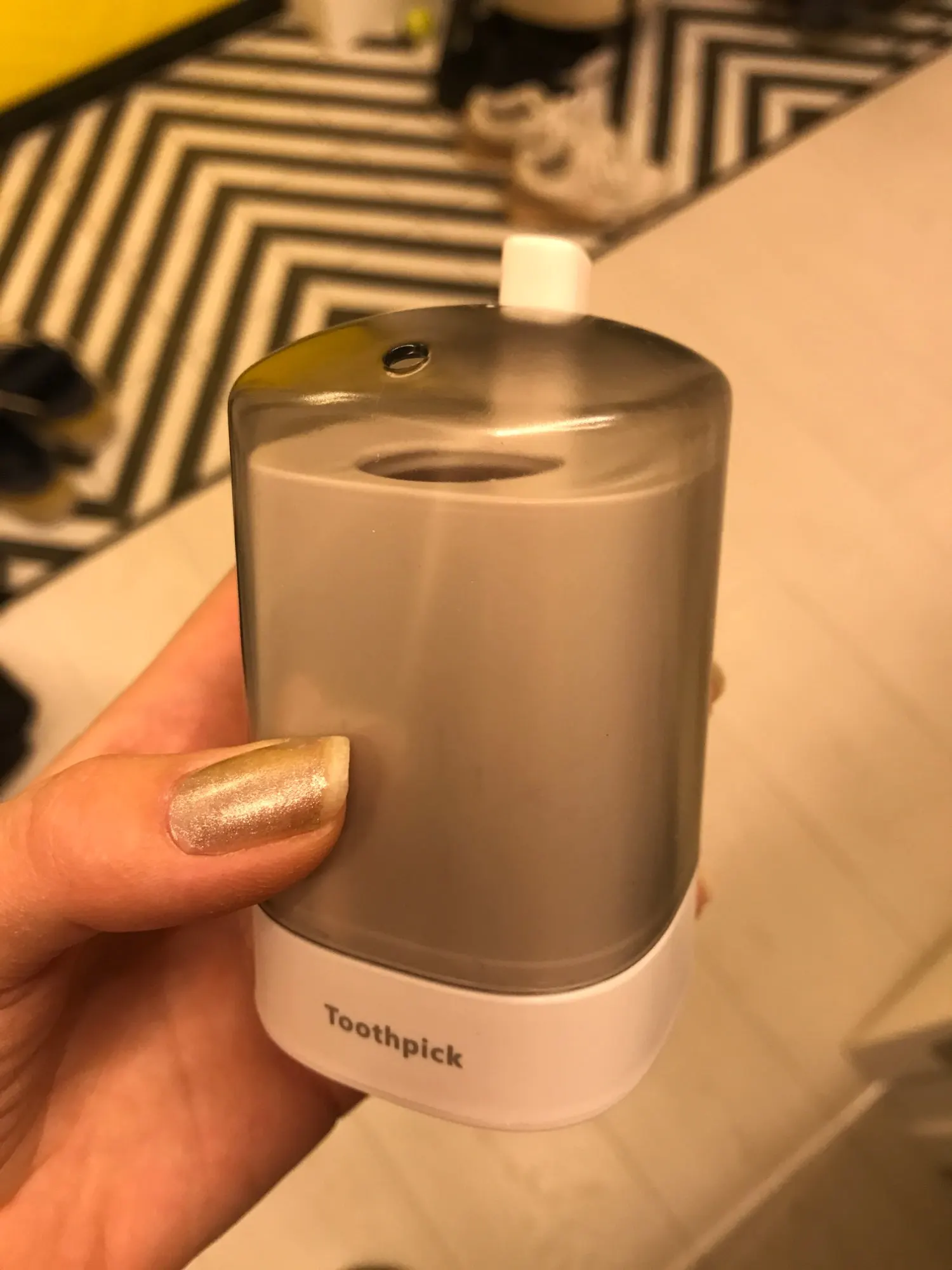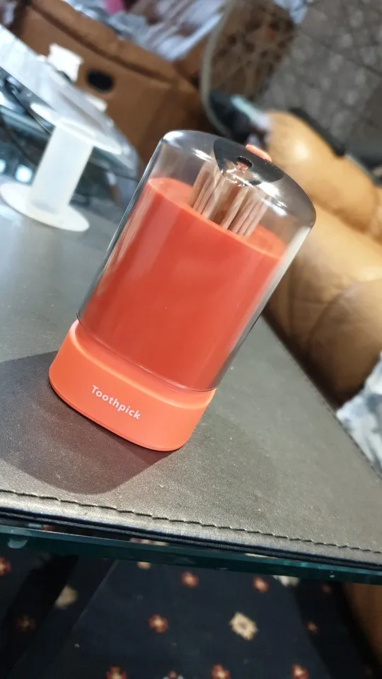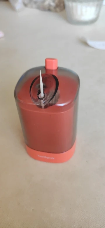 Не всегда срабатывает, приходится по несколько раз нажимать кнопку, чтоб зубочистка выскочила. Контейнер для зубочисток маленький.