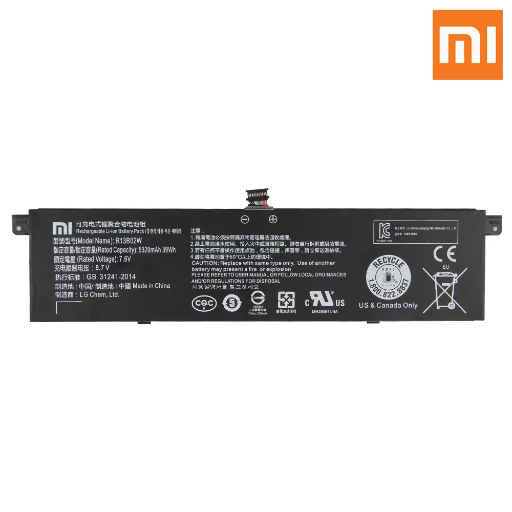 Оригинальный сменный аккумулятор Xiao Mi R13B01W, R13B02W для Xiaomi Mi Notebook Air 13, 13,3 дюйма, 161301-01, перезаряжаемая батарея 5320 мАч
