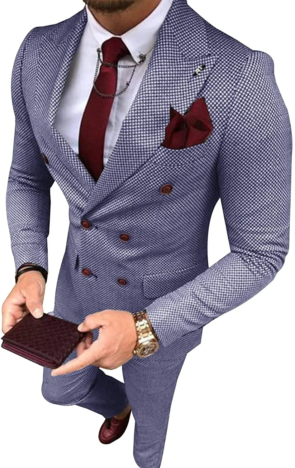 Мужской двубортный костюм-двойка, Свадебный блейзер + брюки, 2020
