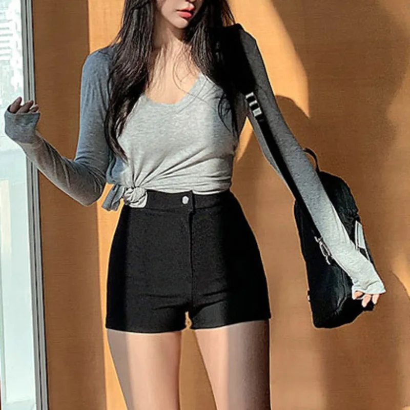 Шорты женские осенние черные с высокой талией, обтягивающие бедра, 2021