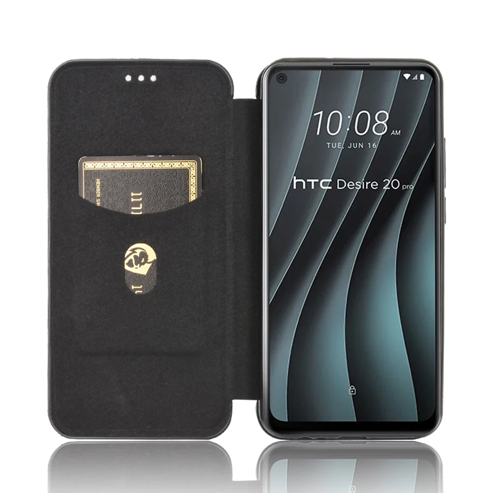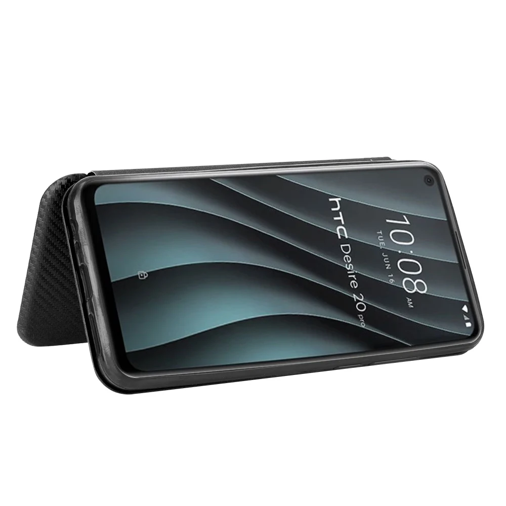 Чехол-книжка для HTC Desire 20 Pro из углеродного волокна Кожаный чехол для HTC Desire 20 Pro деловой Магнитный кошелек с отделением для карт тонкий Чехол
