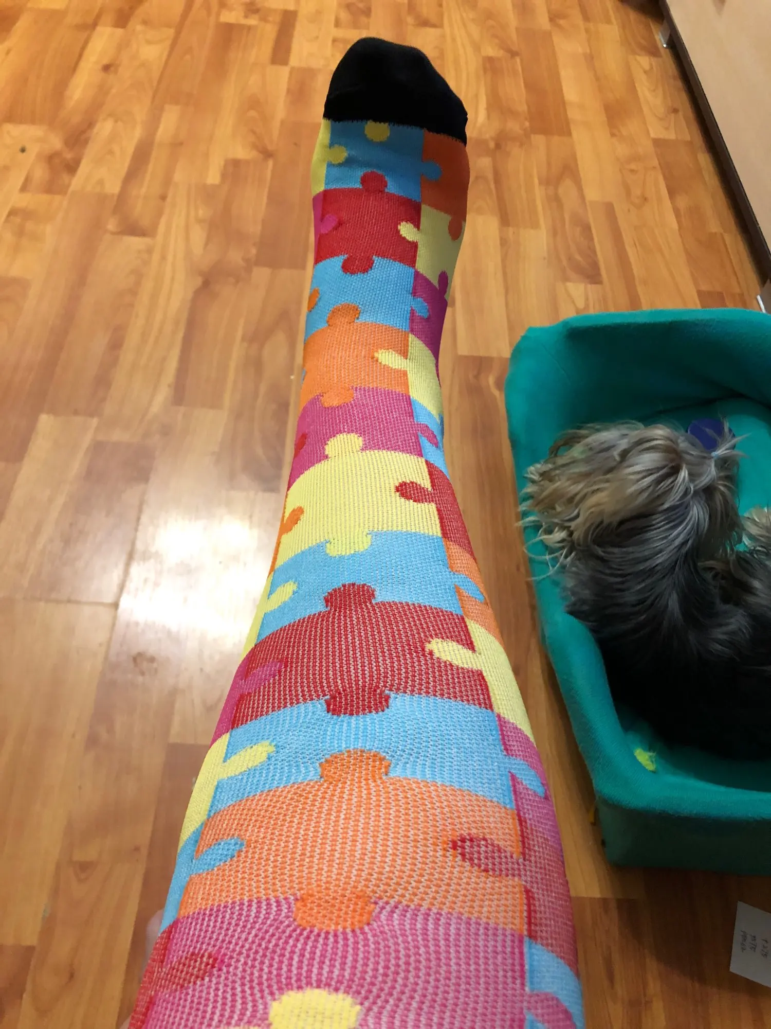 Очень хорошее сжатие, забавные цвета (не такие яркие, как на экране, но все еще достаточно яркие). Я доволен своими новыми носками!