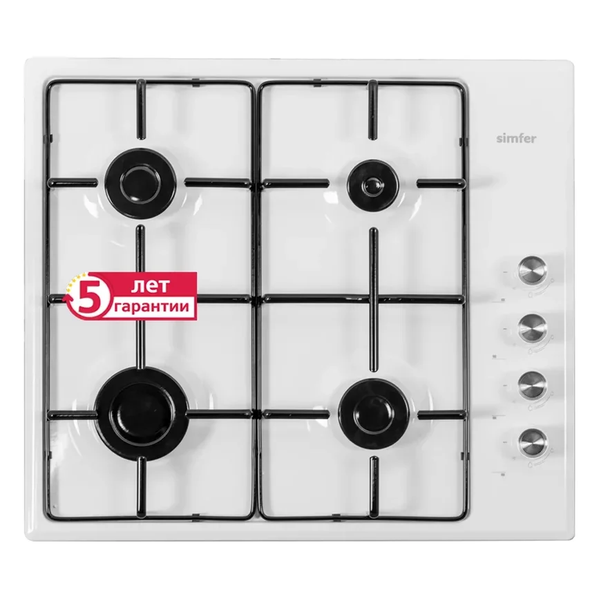 Описание Газовая варочная панель Simfer H60Q40W470, эмалированные решетки, автоподжиг