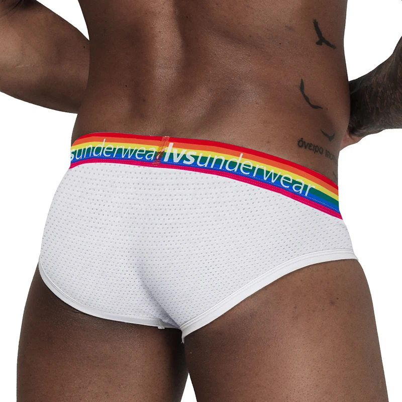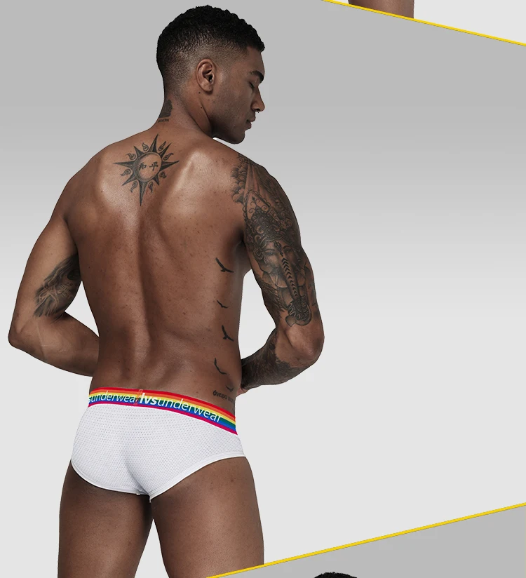 Быстросохнущее Мужское нижнее белье с низкой талией, мужские трусы, сетчатые трусы, радужные дышащие сексуальные u-образные черные и белые трусы