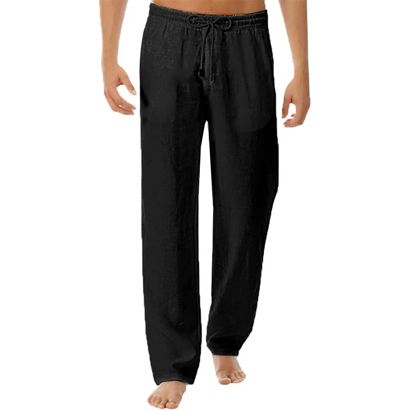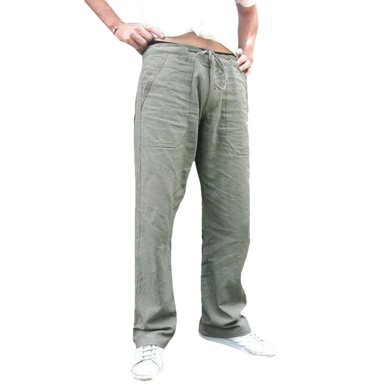 Мужские брюки из хлопка и льна, повседневные штаны для мужчин, летняя одежда, однотонные прямые свободные уличные штаны # w
