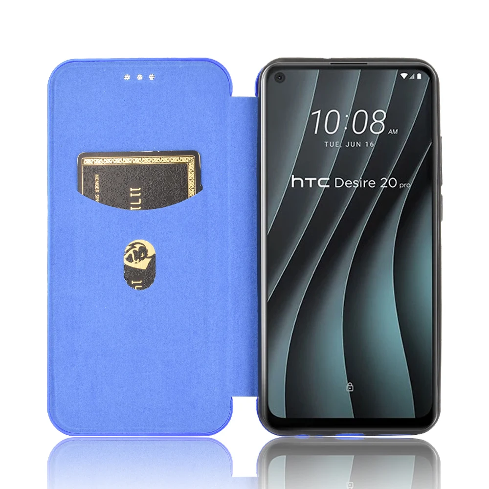 Чехол-книжка для HTC Desire 20 Pro, кожа, углеродное волокно, магнитный