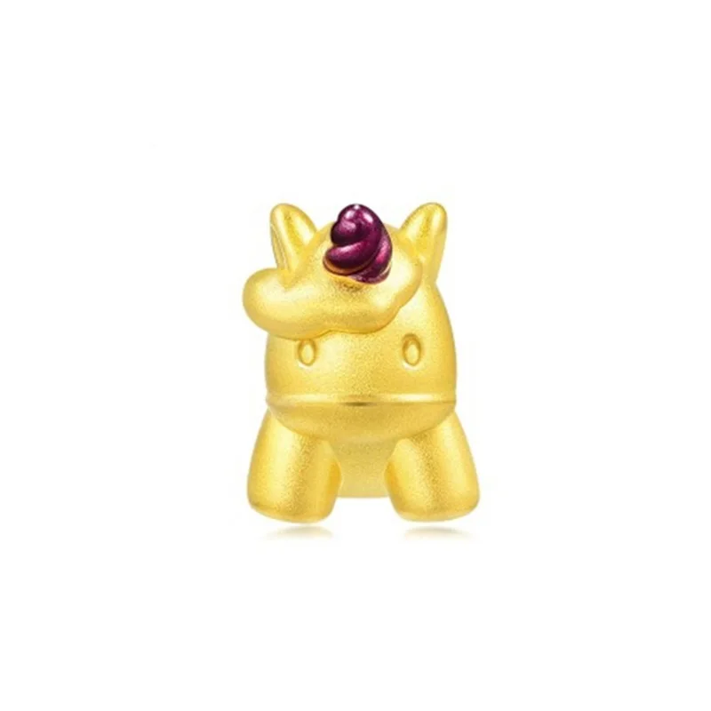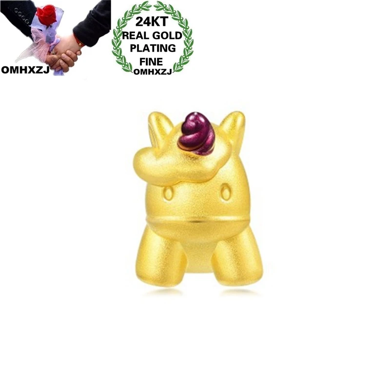 OMHXZJ оптовая продажа CA372 Европейская мода горячие прекрасные женщины мужчины вечерние рождения свадебный подарок Единорог бусины DIY 24KT золотой кулон очаровательные
