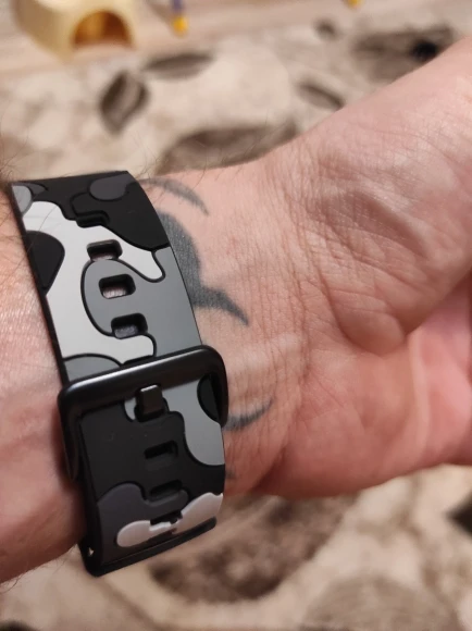 Очень красивый ремешок. такой же мягкий как оригинальный и не тянется, единственный минус... рука под ним потеет и воняет кислым, а вот под оригиналом нет...
