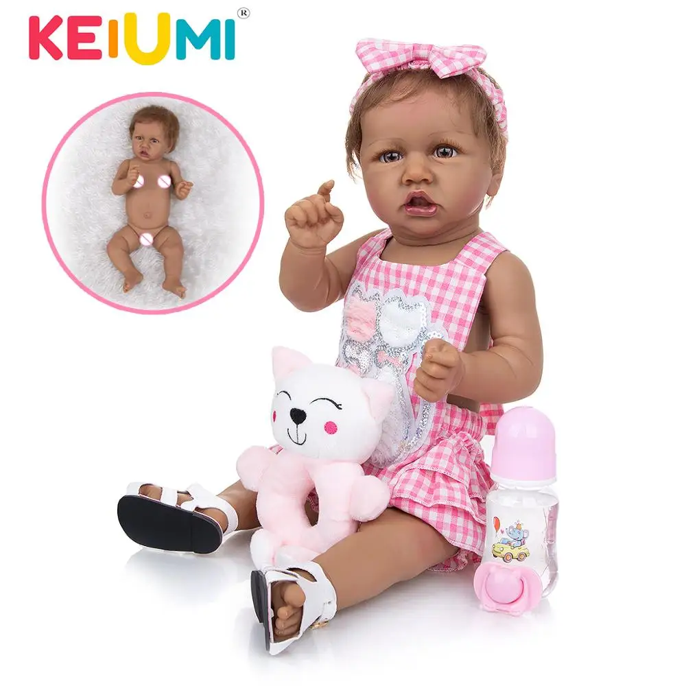 Реалистичная кукла-младенец KEIUMI, 23 дюйма, полностью силиконовая, с загорелой кожей, 57 см