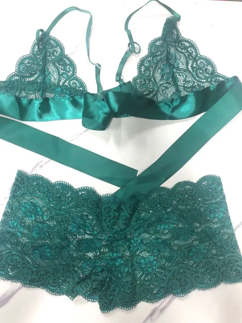 Комплект нижнего белья женский, кружевной бюстгальтер и стринги