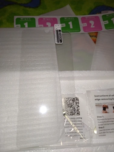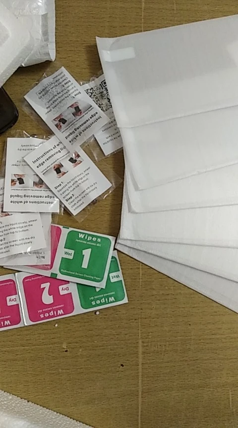 Получила пакет с посылка и, спасибо, что продавцы сейчас кооперируются и складываются несколько посылок в один пакет. Что касается товара. Пришло три стекла в маленькой коробочке, три пары влажных и сухих салфеток, и непонятная для меня пипетка с жижей. Стекло чуть уже самого экрана, но очень даже хорошее. Закажу ещё. Товар рекомендую.
