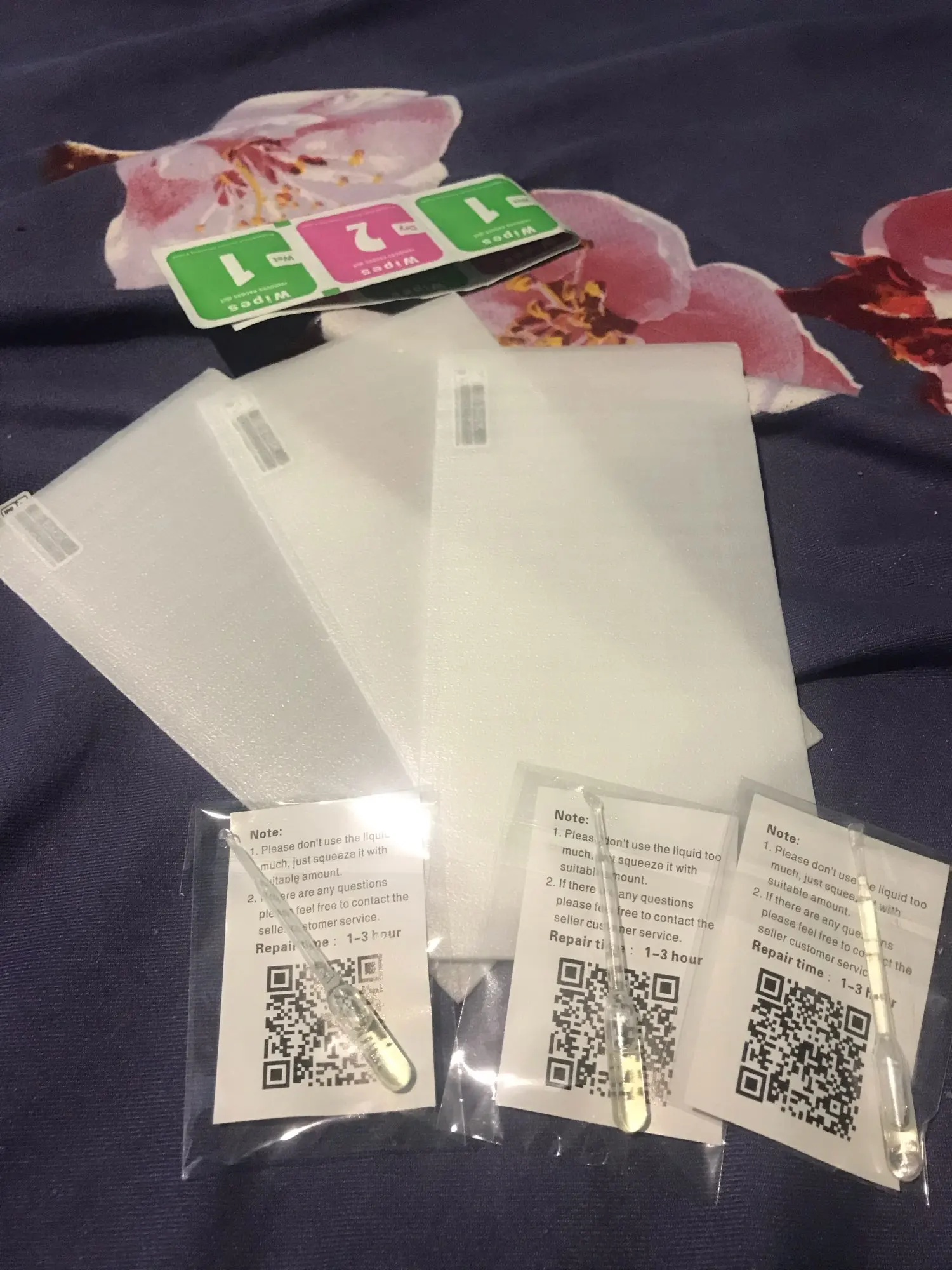 Качество самих стекол на 4. но за такую цену нормально. Все 3 стекла целые. К ним 3 пары салфеток, 3 шт. жижы