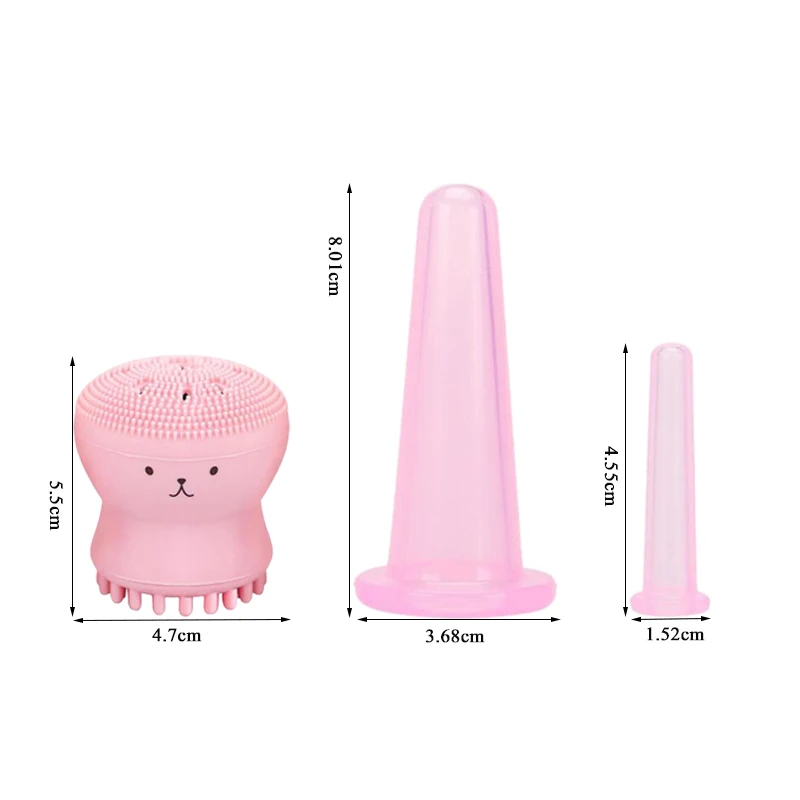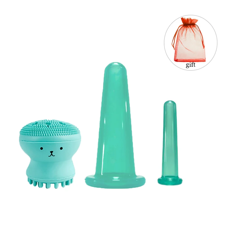 3 шт./лот, вакуумные банки для снятия морщин, массажер для лица, набор кипирования, массажные банки для глаз, щетка для очистки лица, чистая кожа