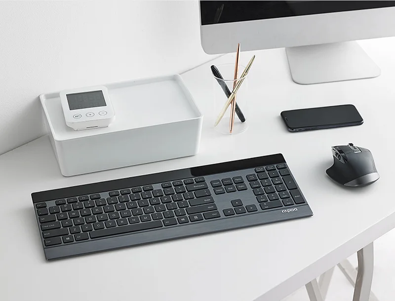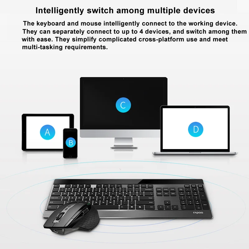 Комбинация Rapoo MT980S, многорежимная беспроводная Тонкая металлическая клавиатура и перезаряжаемая лазерная мышь, переключение между 4 устройствами