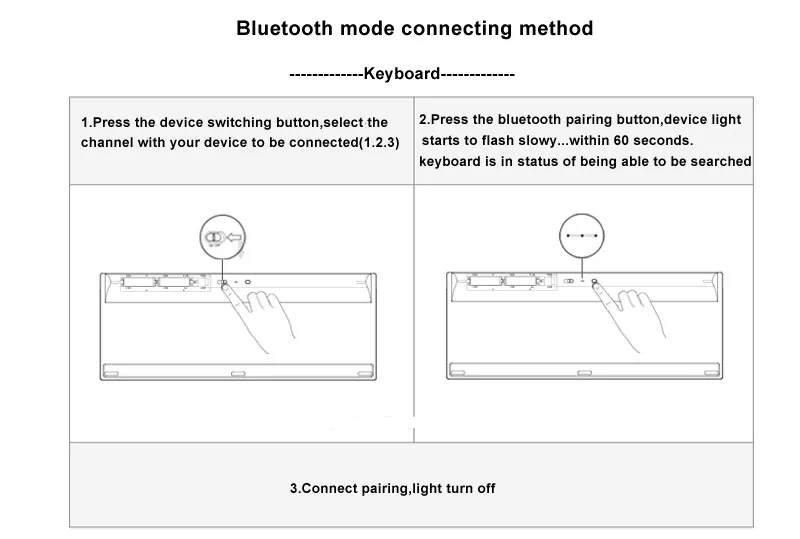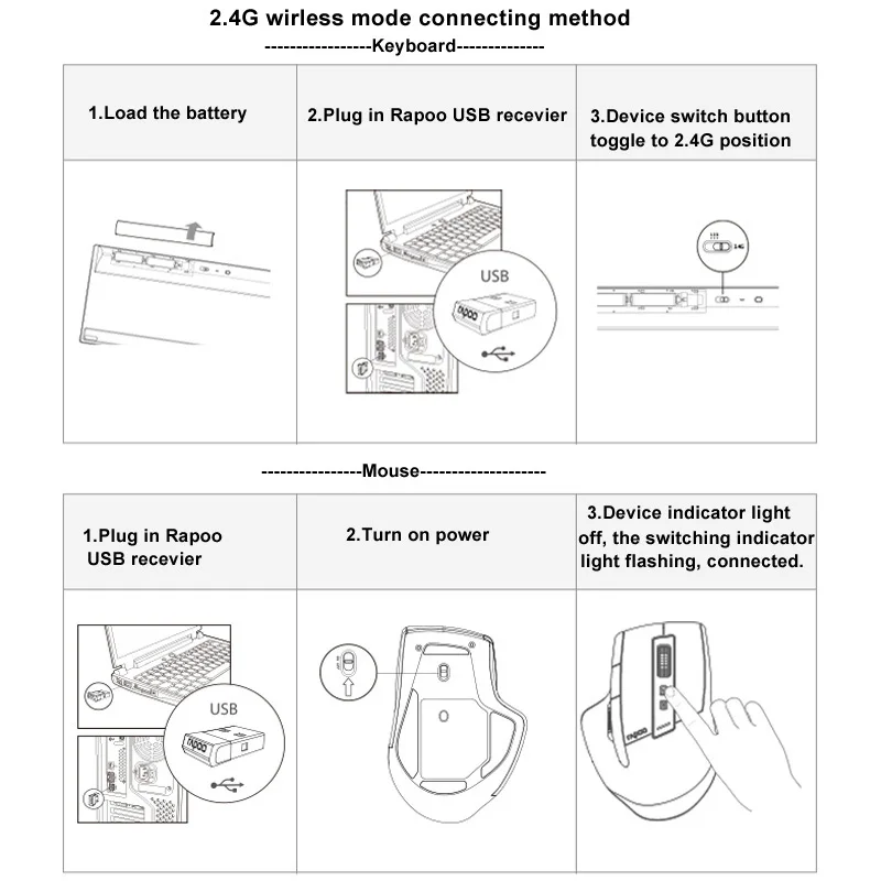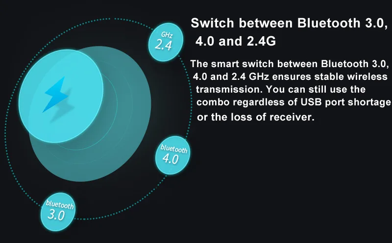 Интеллектуальное переключение между несколькими устройствамиКлавиатура и мышь разумно подключаются к рабочему устройству. Они могут отдельно подключаться к 4 устройствам и легко переключаться между ними. Они упрощают сложное использование кросс-платформы и отвечают многозадачным требованиям.Переключение между Bluetooth 3,0, 4,0 и 2,4GУмный переключатель между Bluetooth 3,0, 4,0 и 2,4 ГГц обеспечивает стабильную беспроводную передачу данных. Вы все еще можете использовать комбо независимо от нехватки USB-порта или потери приемника.Ультратонкие плавающие ключи chiclet4,0 мм при самом тонком основании из нержавеющей стали и панели из алюминиевого сплава обеспечивают комфорт тактильно; Точный ножницы структура клавиш позволяют легко нажимать кнопки.Точность на нескольких поверхностяхВысокопроизводительный лазерный двигатель позволяет использовать мышь на нескольких поверхностях. Наслаждайтесь высокой скоростью отклика и непревзойденной точностью.Полностью регулируемый датчик DPIТочность до последнего пикселя: благодаря настраиваемому датчику DPI точность больше не оставляет шансов. Регулируется от 600 DPI до 3200 DPI, вы можете адаптировать его под свои предпочтения.Экологичная аккумуляторная батареяБлагодаря встроенной экологически чистой литиевой батарее мыши вы можете наслаждаться длительным сроком службы батареи с полной зарядкой. Избавляет от необходимости частой замены батарей.Системные требования:Windows XP/Vista/7/8/10 или новее, USB порт, Mac OS.Посылка1 * многорежимная беспроводная клавиатура1 * многорежимная беспроводная мышь1 * USB-кабель для зарядки1 * USB-приемник1 * Руководство пользователяПримечание 1: боковое колесо прокрутки по умолчанию, функция поворота влево и вправо. Можно настроить другие функции с помощью драйвера.Примечание 2: Драйвер WIN: 8 кнопок можно настроить в режиме 2,4G, 4 кнопки можно настроить в режиме bluetooth 4,0.Примечание 3: Драйвер MAC: 5 кнопок можно настроить в режиме 2,4G, 5 кнопок можно настроить в режиме bluetooth 4,0.Пожалуйста, обратите внимание!В качестве строгой проверки таможней, поэтому мы открываем пломбу и извлекаем аккумулятор. Упаковываем без батареек. Если вы заботитесь об этом, пожалуйста, подумайте перед размещением заказа, искренне благодарим!