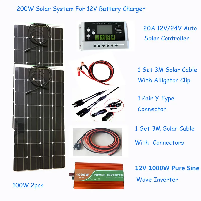 200 Вт солнечная панель системы DIY наборы 2шт 100 Вт Гибкая солнечная панель 20А Солнечный контроллер 1 комплект 3 м кабель Y Тип коннектор для лодки
