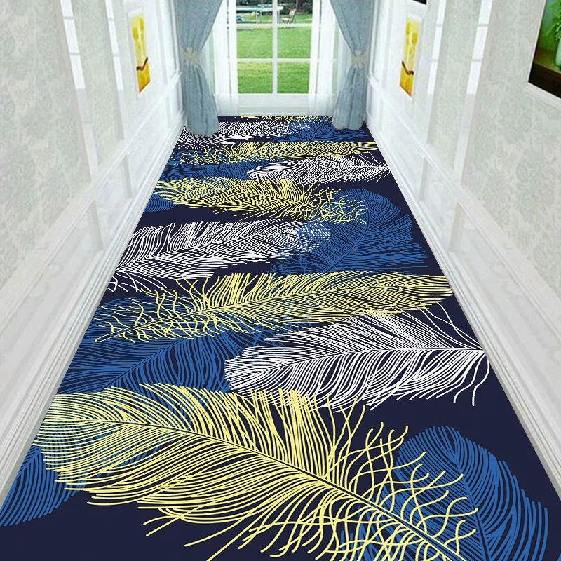 Скандинавские современные перьевые узоры, коридорные лестницы, ковер для отеля, длинный проходной ковер, домашний входковрик для прихожей, Противоскользящие коврики