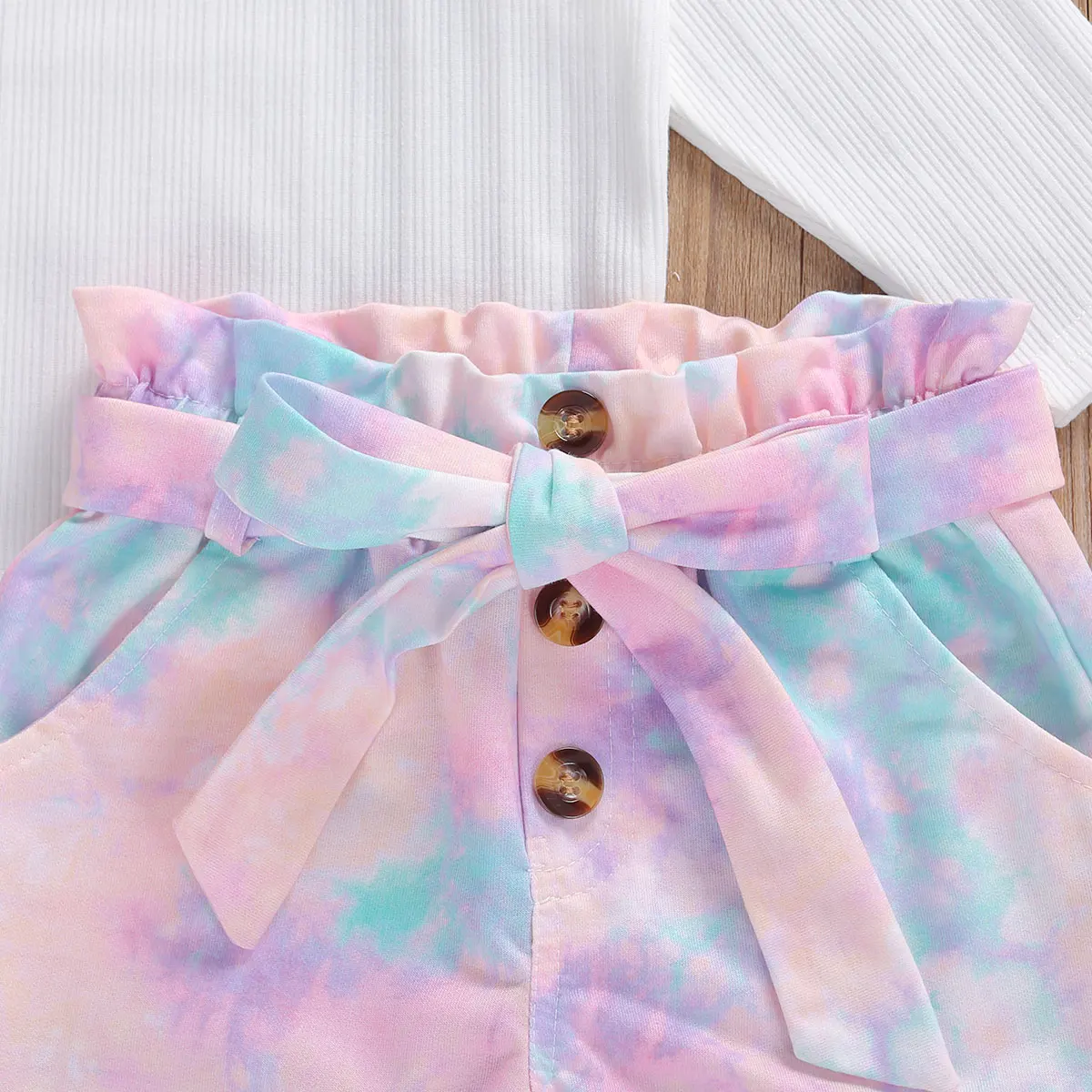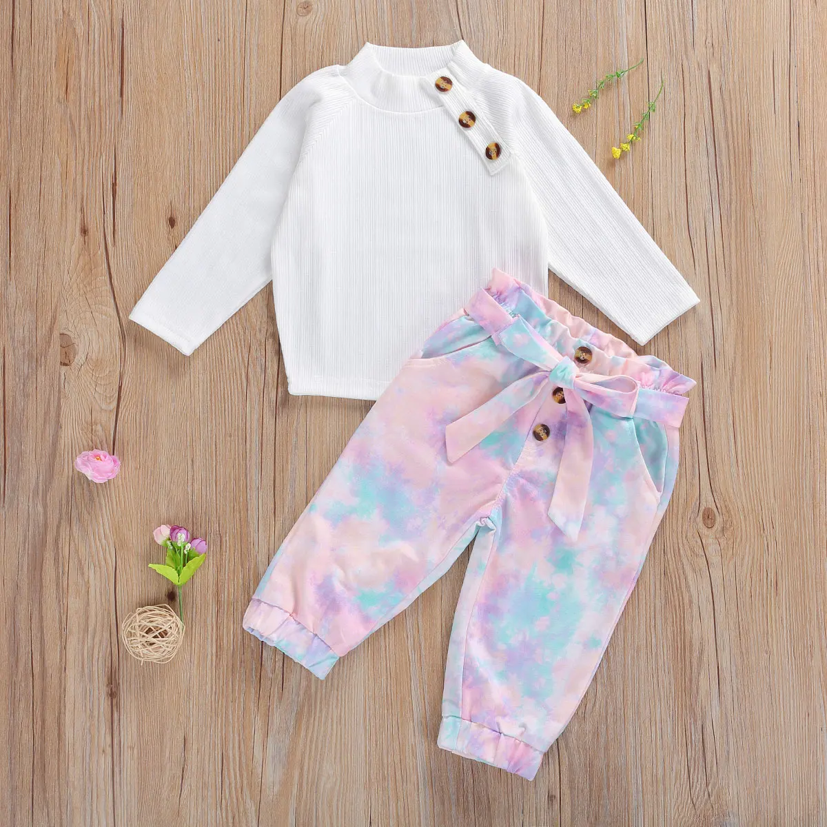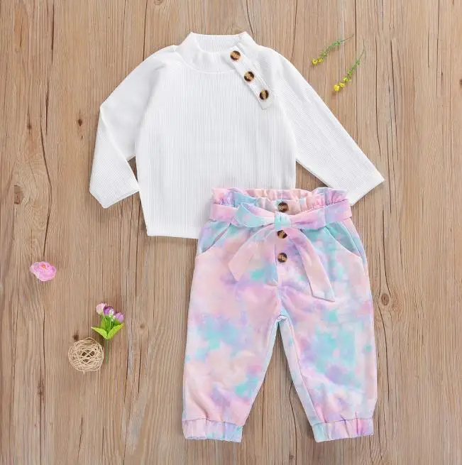 Tbabyосенний Однотонный свитер с высоким воротником и длинными рукавами для маленьких девочек галстук-краска для брюк комплект одежды из 2 предметов