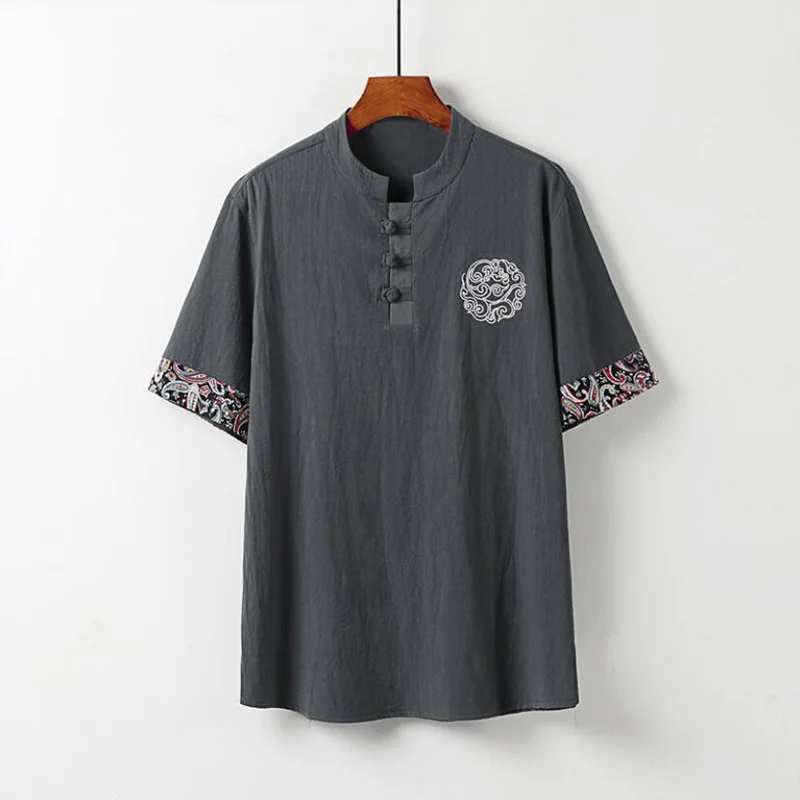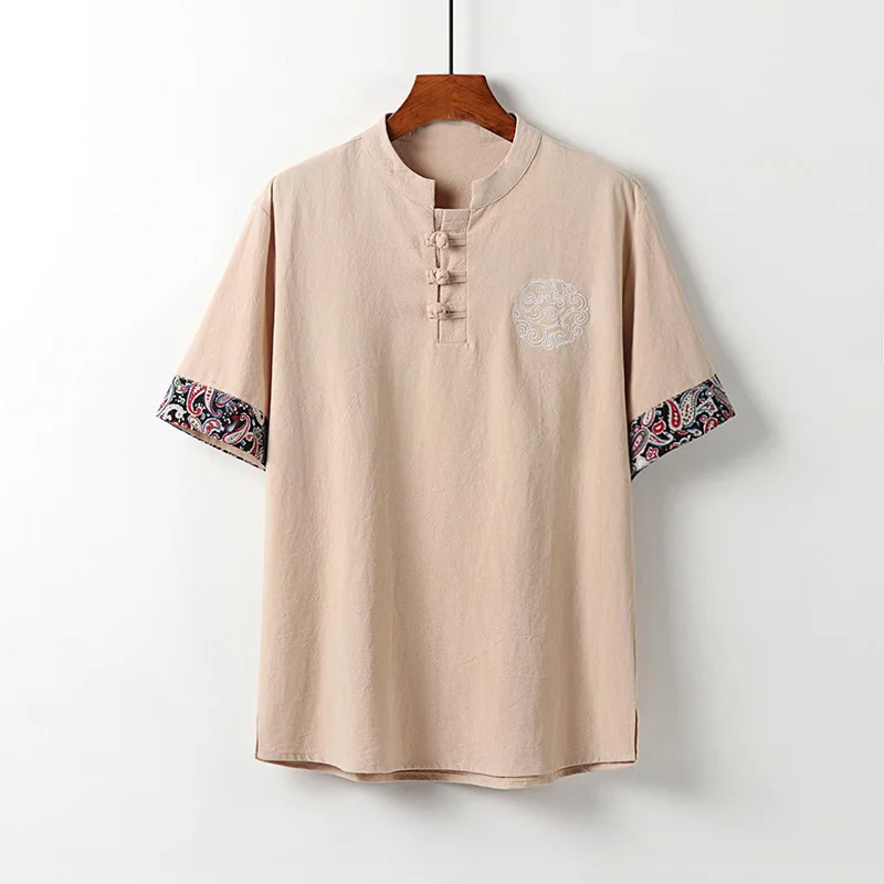 Футболка мужская льняная с коротким рукавом, Повседневная стильная рубашка, винтажный домашний костюм Тан, большие размеры 8XL 9XL, 70, на лето