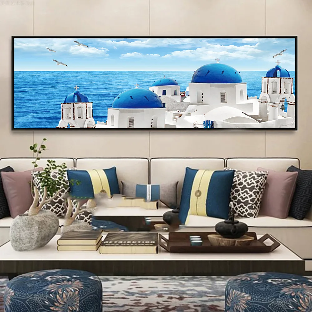 Современная Скандинавская Греция Санторини вид на стену Эгейского моря Искусство на холсте картина печать постер гостиная домашний Декор Фон